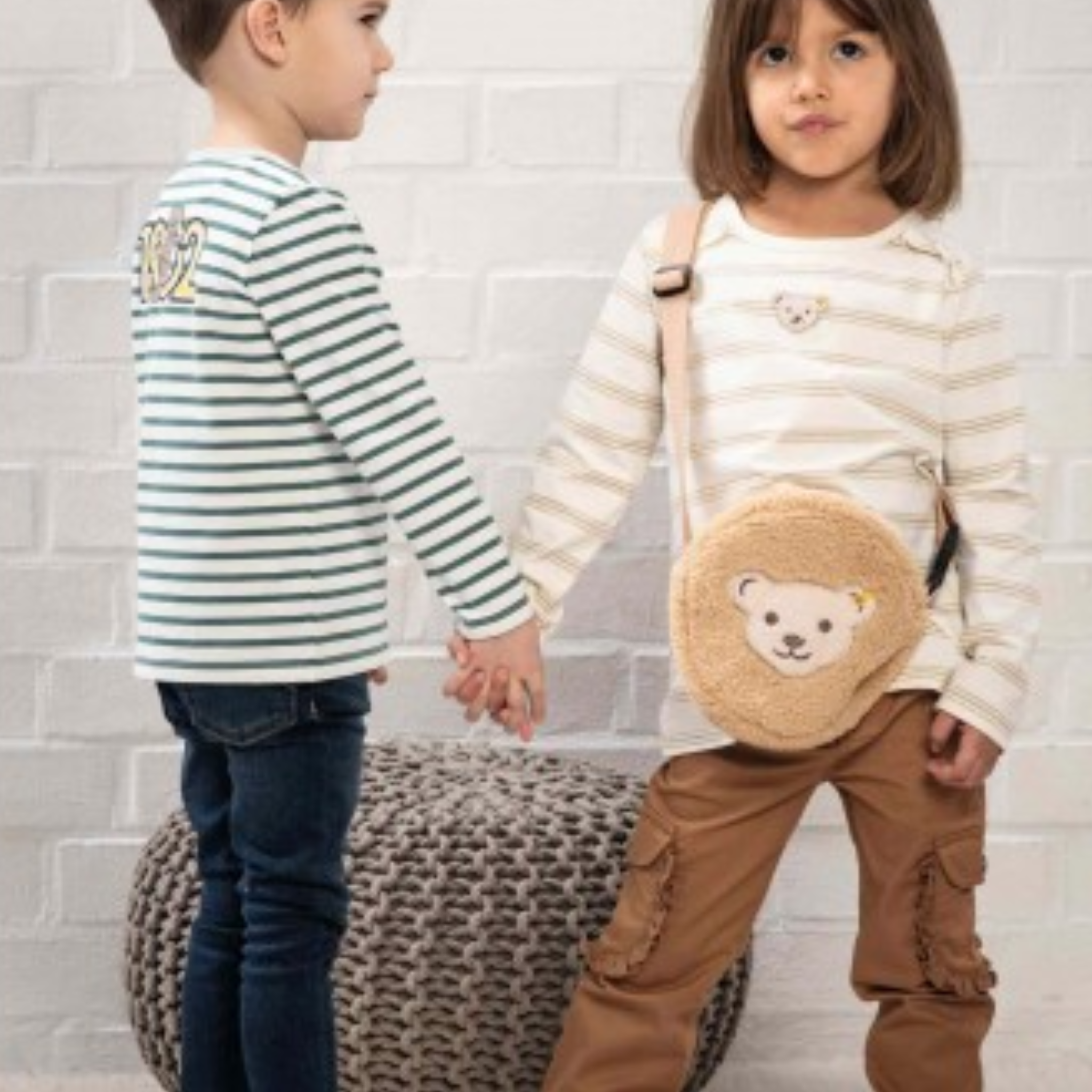 It comes with a beautiful, big plush teddy bear motif – typical of the "120th teddy bear anniversary" series – and, of course, a squeaker, which turns the bag into a star attraction every time it is pressed.