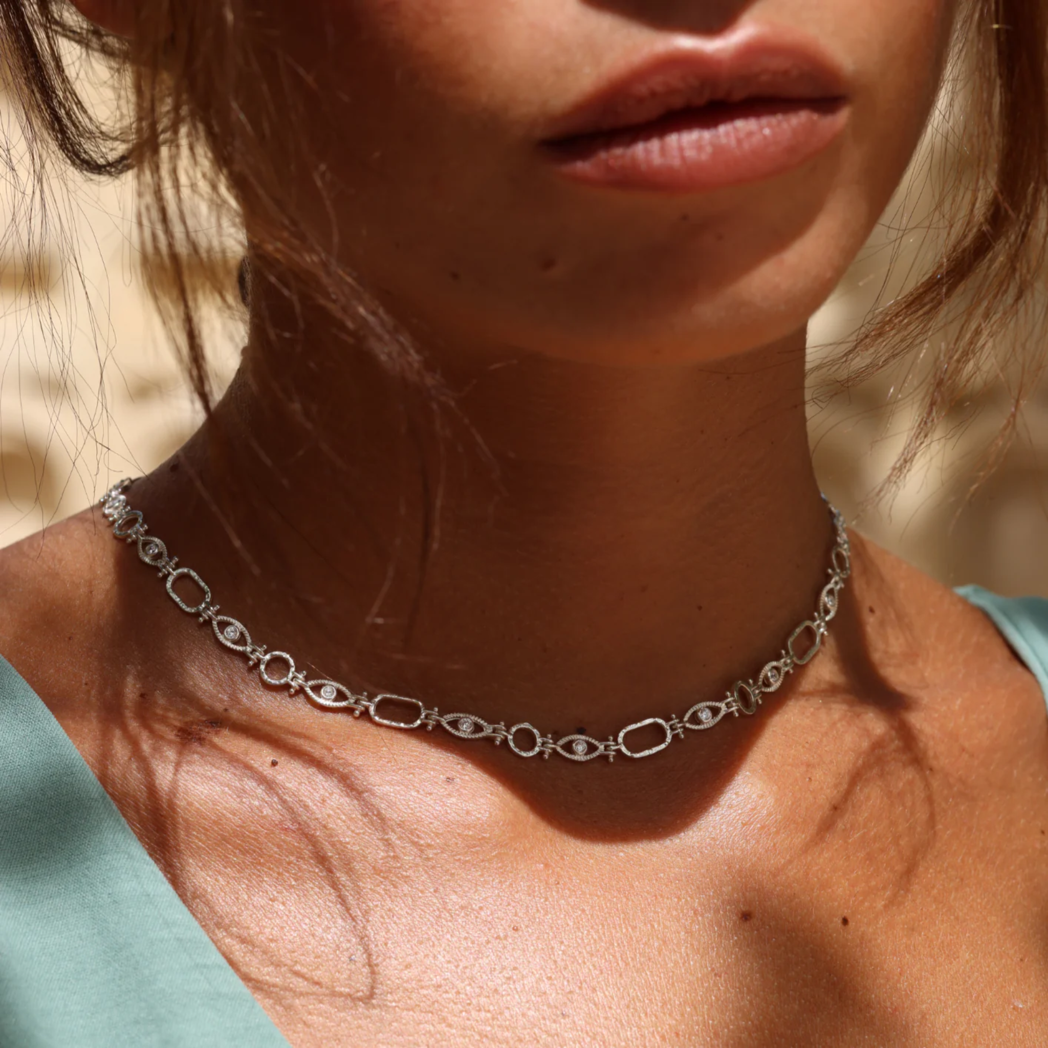 Shipping calculated at checkoutThe All Seeing Eye Necklace is a delicate handmade chain with an organic finish and eye motif. The chain and hinges are each meticulously handmade by our master silversmiths.
