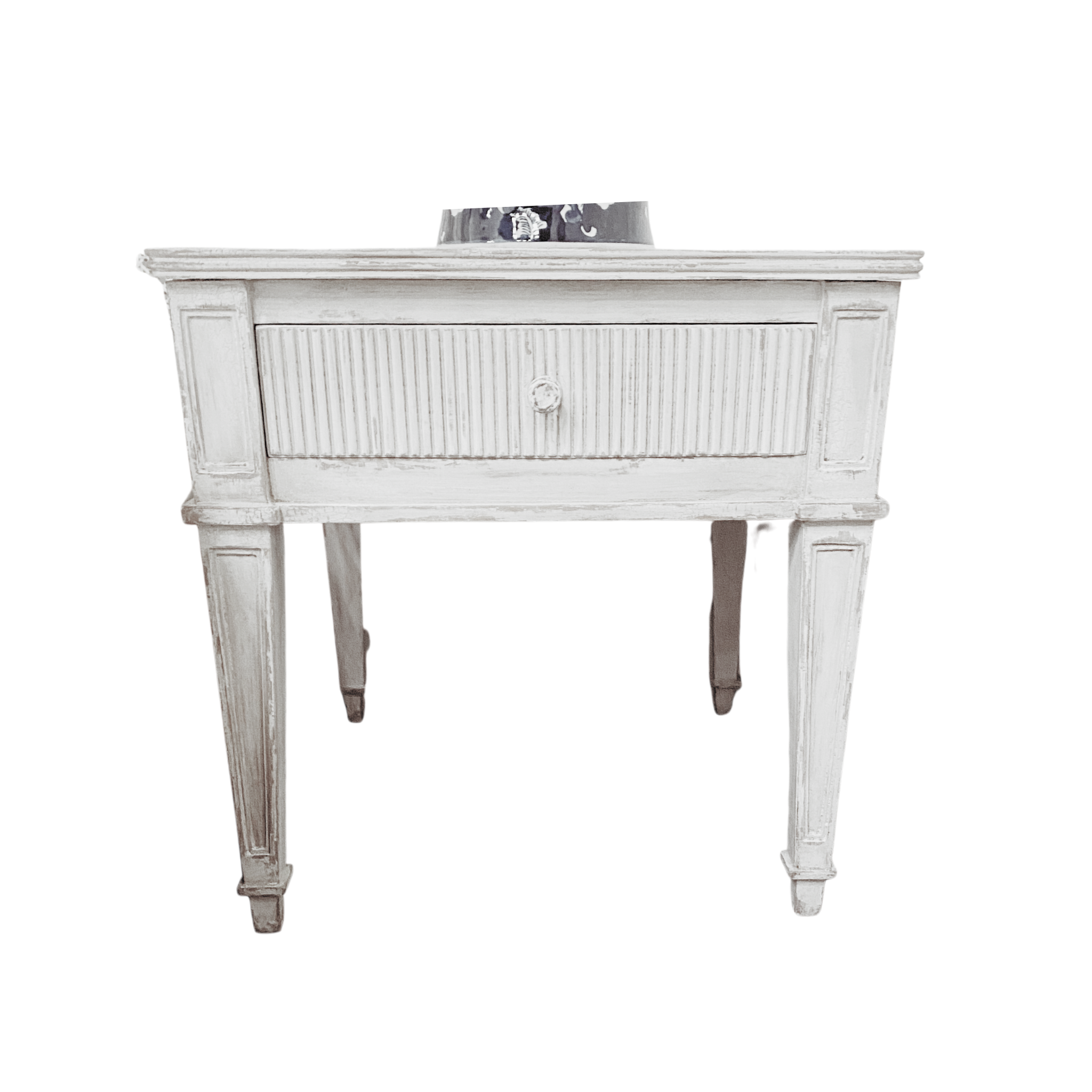 Often used in Swedish royal palaces, the Gustavian style dates back to the 1780's. This style of furniture was influenced by te Rococo Style, and thereafter the Neoclassic Style. The pale hues of white, grey and cream colours and elegantly worm patina turn these Scandinavian furniture pieces into classical elements and the distressed and slightly textured finish brings antique charm and ensures each piece is utterly unique. Each is individually hand carved and hand finished.